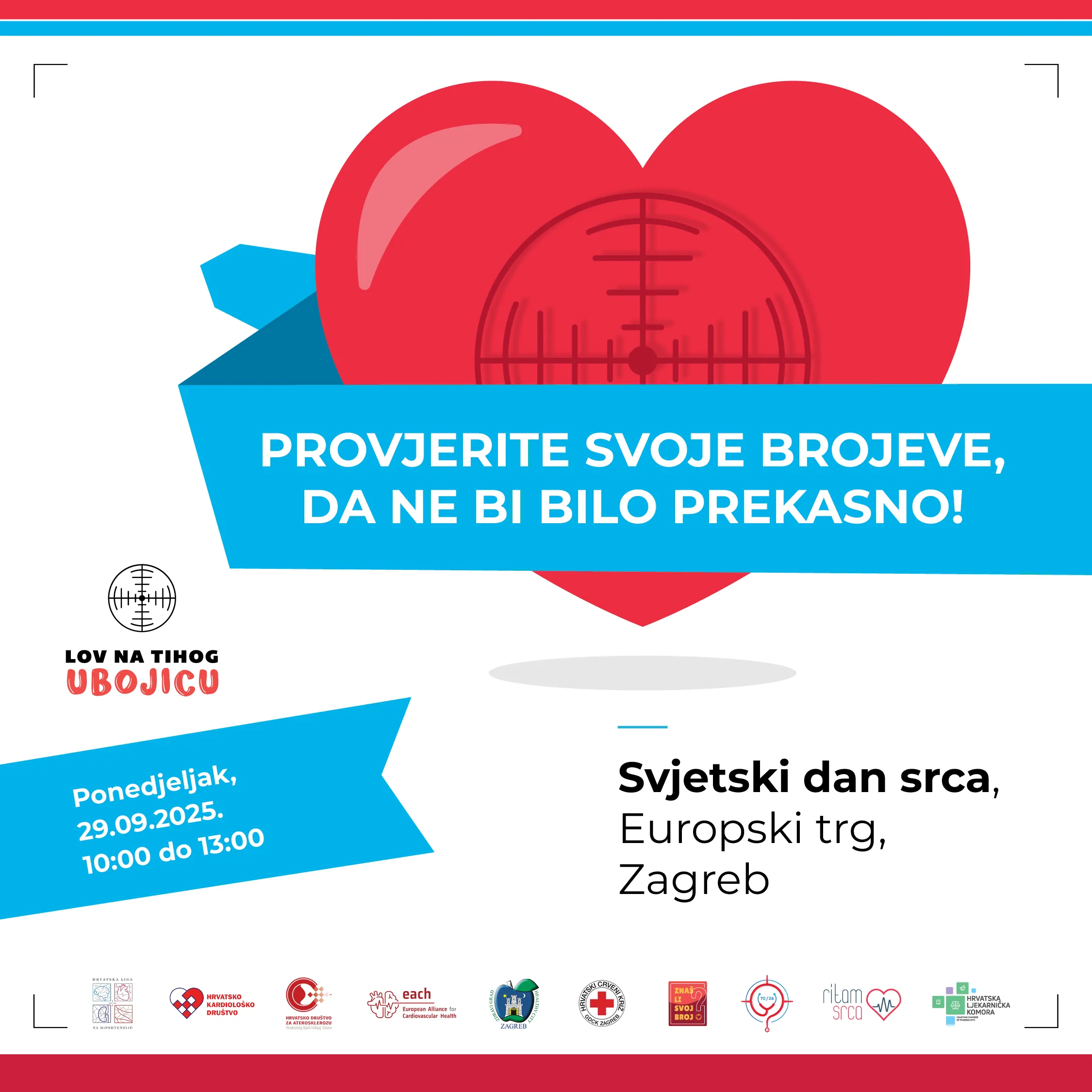 U ponedjeljak, 29. rujna 2025. na Svjetski dan srca održat će se velika javnozdravstvena akcija Lov na tihog ubojicu, koju organizira Hrvatska liga za hipertenziju zajedno s Hrvatskim kardiološkim društvom i partnerskim domaćim društvima, a po prvi puta u Hrvatskoj i u suradnji s Euopskim kardiološkim društvom (ESC) i European Alliance for Cardiovascular Health (EACH). Ova društva tako odaju priznanje i pokazuju svoju podršku Lovu na tihog ubojicu i njegovom dugogodišnjem uspješnom trajanju koji je i izvan Hrvatske postao primjer ustrajnosti u podizanju zdravstvene pismenosti i brige za zdravlje naroda.